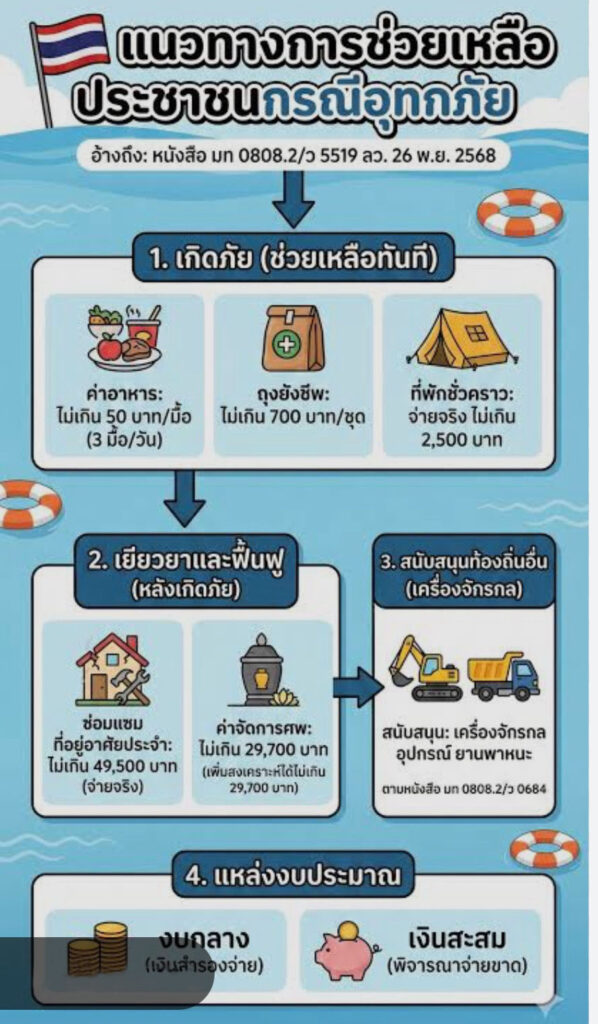 แนวทางปฏิบัติในการจัดซื้อจัดจ้างและการดำเนินการกรณีเหตุอุทกภัยในพื้นที่ภาคใต้ ด่วนที่สุด ที่ กค (กวจ) 0405.2/ว 837 ลงวันที่ 26 พฤศจิกายน 2568